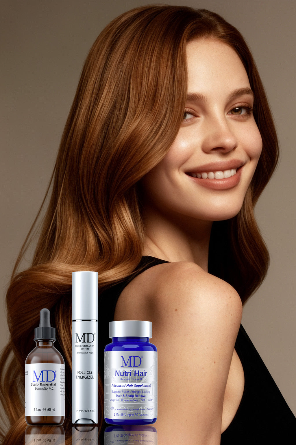 The set includes three simple steps: • Step 1: MD Scalp Essential — Apply once daily to a clean, dry scalp to exfoliate, balance oil, and energize follicles. • Step 2: MD Follicle Energizer — Apply once daily to thinning or shedding areas using the precision applicator. This serum helps activate follicles and stimulate new hair growth. • Step 3: MD Nutri Hair — Take one capsule daily to nourish your hair from within, promoting thicker, shinier hair and restoring fullness.